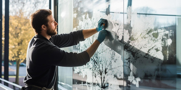 Dry application is the most straightforward installation method. The graphic is applied directly to the glass surface without any liquid.